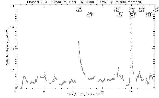 event begin max end class region ----- ----- ----- ----- ----- ------ 1380 10:33 10:49 11:00 C8.3 4345 1390 12:18 12:23 12:30 C2.3 4342 1410 17:02 17:07 17:15 C4.3 4351 1420 17:33 17:45 17:50 C2.6 4353 1440 19:34 19:41 19:43 C1.9 4353 1450 19:43 19:54 20:00 C9.5 4353 1470 21:16 21:22 21:26 C2.3 4345 1480 22:29 22:34 22:39 C1.9 1490 23:45 23:52 23:56 C2.6 4345