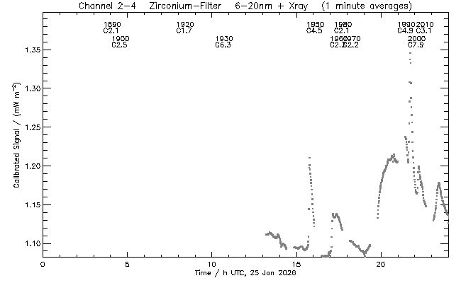 event begin max end class region ----- ----- ----- ----- ----- ------ 1890 03:35 03:41 03:48 C2.1 4351 1900 04:04 04:13 04:17 C2.5 4351 1920 07:54 08:01 08:09 C1.7 4342 1930 10:12 10:30 10:41 C6.3 4351 1950 15:36 15:45 15:52 C4.5 4349 1960 16:59 17:08 17:14 C2.3 4351 1980 17:14 17:20 17:23 C2.1 4351 1970 17:45 17:50 17:54 C2.2 4343 1990 20:59 21:08 21:16 C4.9 4349 2000 21:36 21:43 21:47 C7.9 4342 2010 22:05 22:13 22:19 C3.1 4349