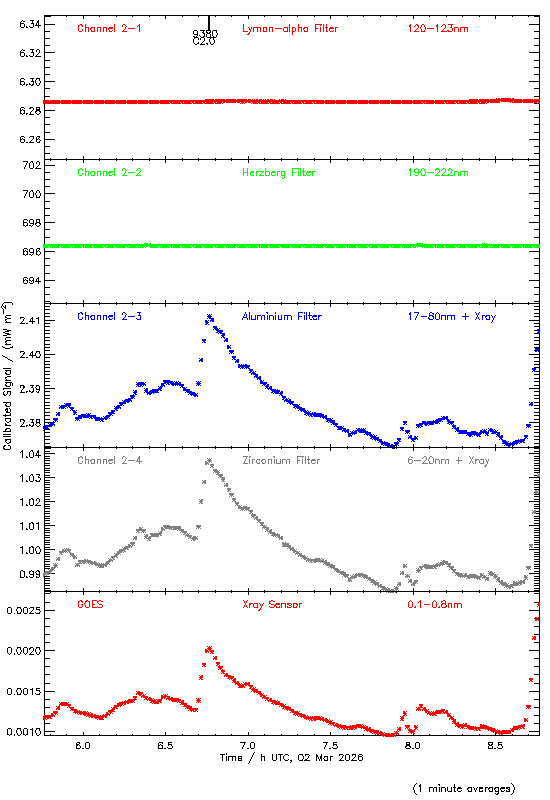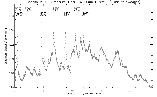 event begin max end class region ----- ----- ----- ----- ----- ------ 9320 00:07 00:15 00:19 C1.3 4384 9460 00:19 00:26 00:29 C2.8 4384 9340 01:50 02:03 02:32 C1.3 4384 9350 04:29 04:38 04:40 C4.5 4384 9380 06:40 06:46 06:55 C2.0 4381 9420 08:36 08:47 08:54 C2.5 4381 9470 10:22 10:29 10:34 C2.9 4384 9480 11:47 11:54 11:58 C2.1 4384