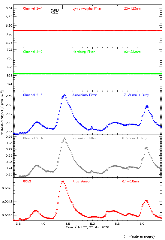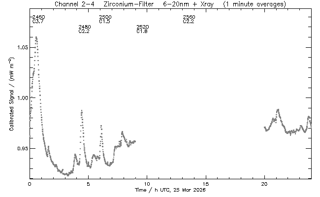 event begin max end class region ----- ----- ----- ----- ----- ------ 2460 00:14 00:30 00:37 C3.7 4400 2480 04:10 04:24 04:33 C2.2 4403 2500 05:55 06:05 06:11 C1.5 4401 2520 09:06 09:16 09:22 C1.8 4403 2560 13:04 13:12 13:21 C2.2 4403