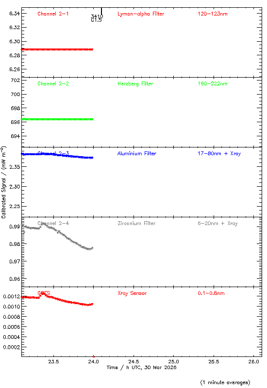 event begin max end class region ----- ----- ----- ----- ----- ------ 3270 00:34 00:48 00:59 C1.6 4405 3290 02:47 03:19 03:44 X1.4 4405 3400 20:40 20:47 20:52 C2.1 4402 3410 23:58 00:06 00:14 C1.5 4407