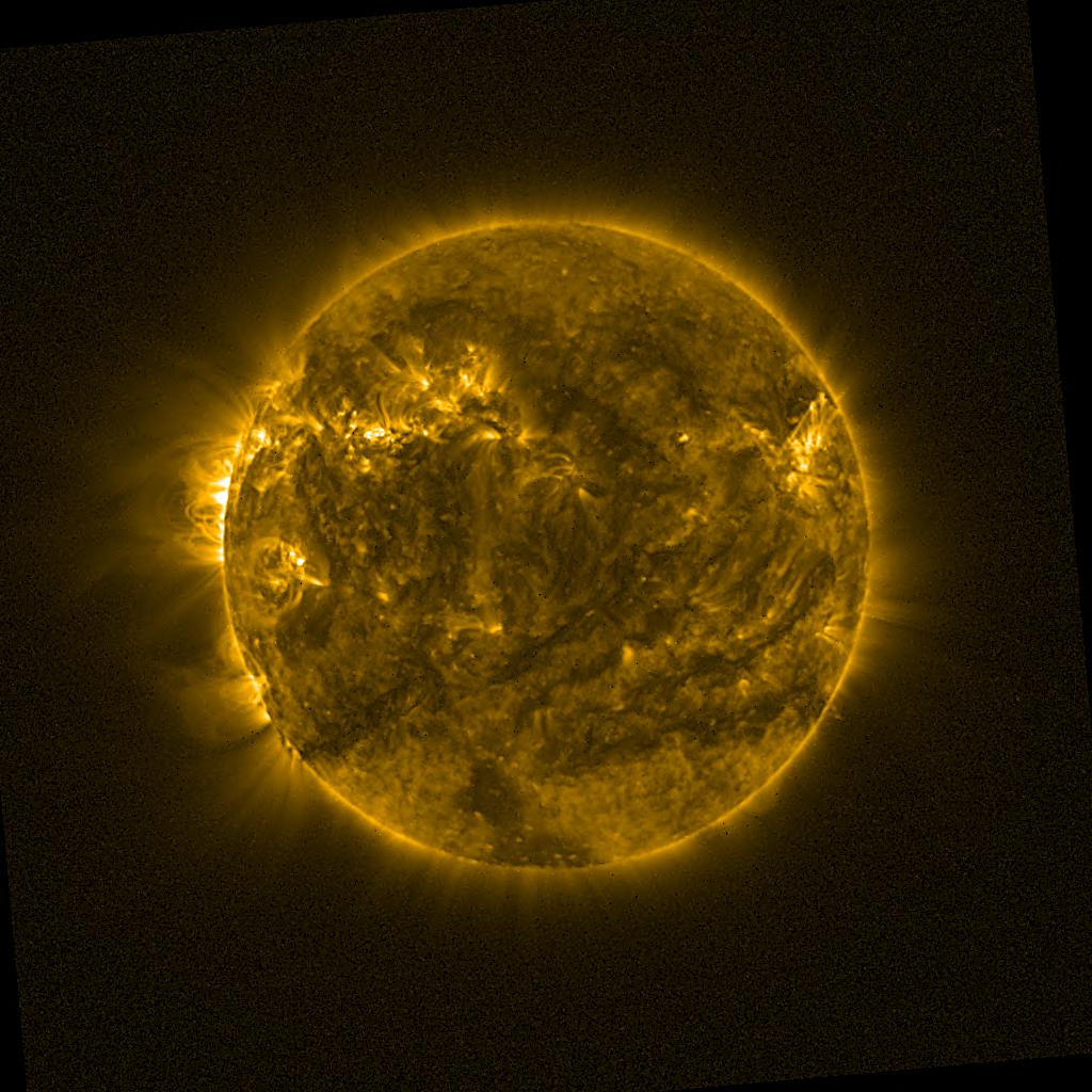 Lines indicated in yellow correspond to events on the (non-visible) backside of the sun.