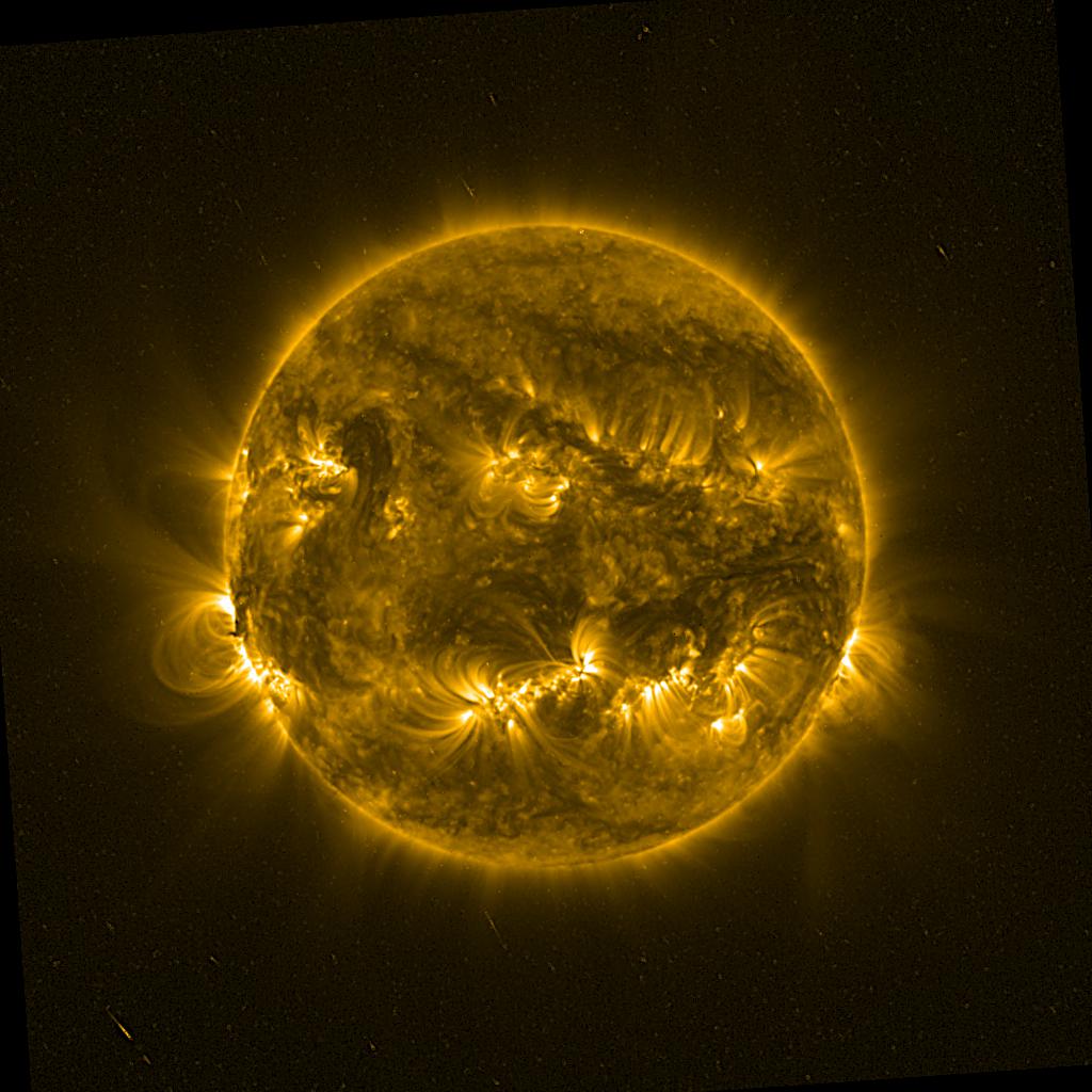 Lines indicated in yellow correspond to events on the (non-visible) backside of the sun.