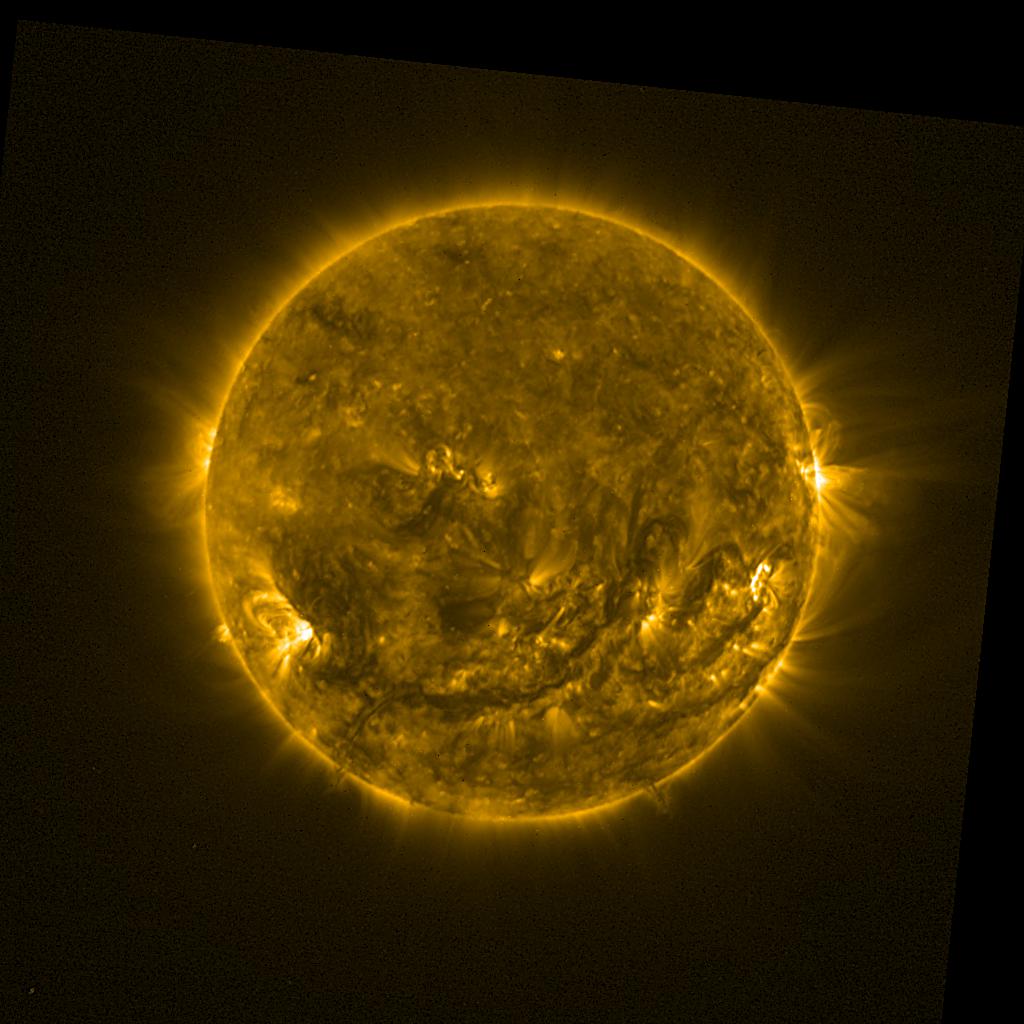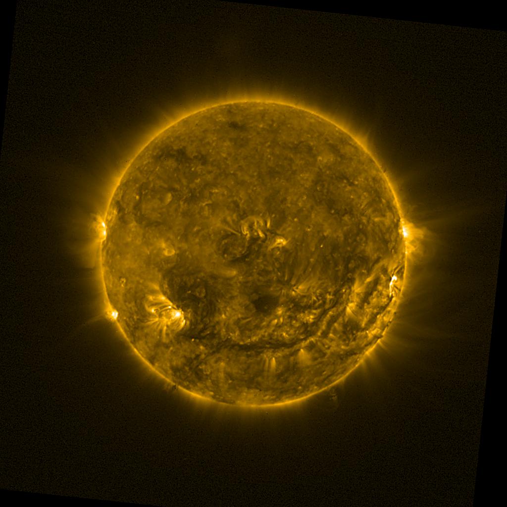 Lines indicated in yellow correspond to events on the (non-visible) backside of the sun.
