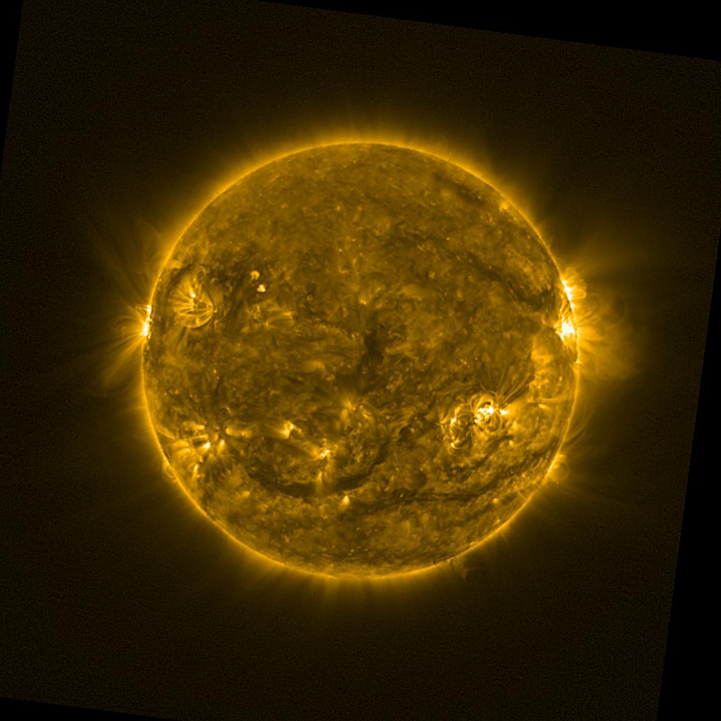 Lines indicated in yellow correspond to events on the (non-visible) backside of the sun.