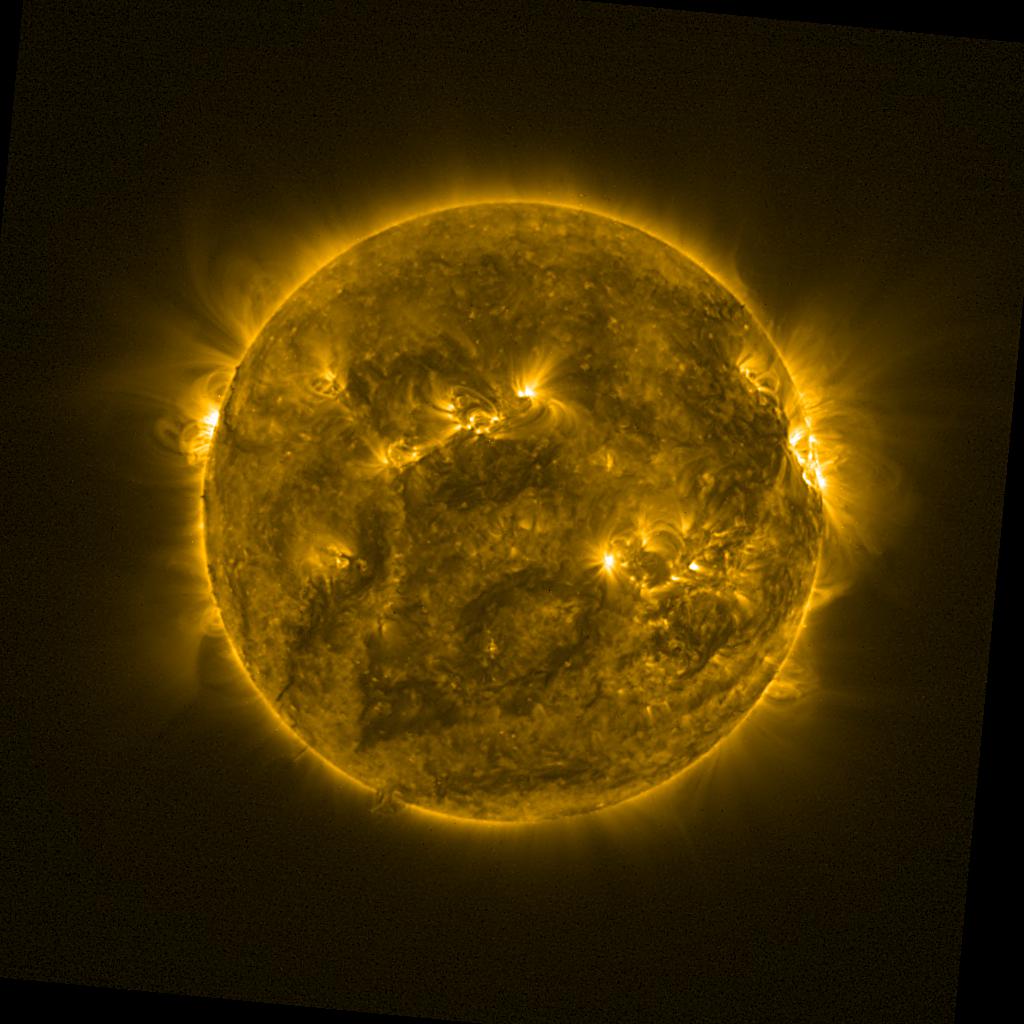 Lines indicated in yellow correspond to events on the (non-visible) backside of the sun.