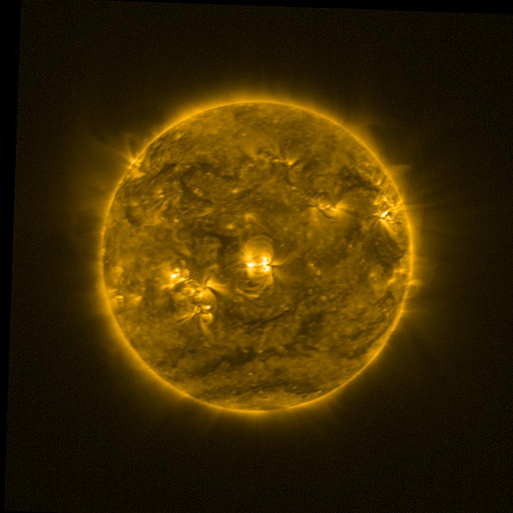 Lines indicated in yellow correspond to events on the (non-visible) backside of the sun.