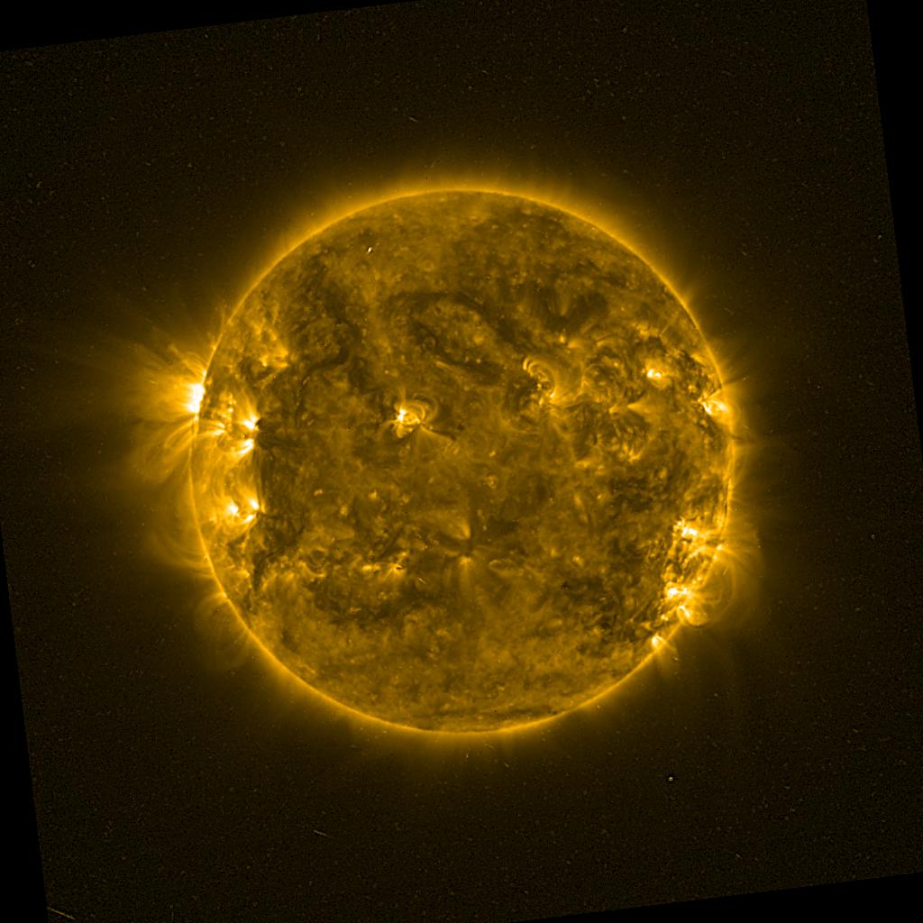 Lines indicated in yellow correspond to events on the (non-visible) backside of the sun.
