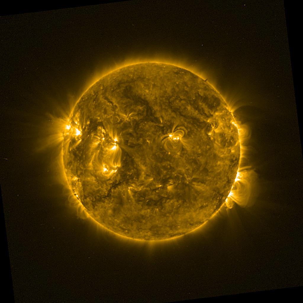 Lines indicated in yellow correspond to events on the (non-visible) backside of the sun.