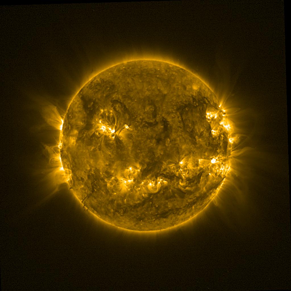 Lines indicated in yellow correspond to events on the (non-visible) backside of the sun.