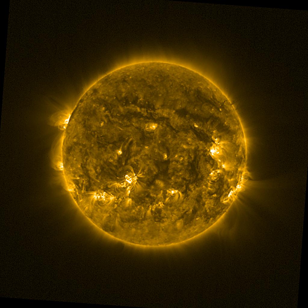 Lines indicated in yellow correspond to events on the (non-visible) backside of the sun.