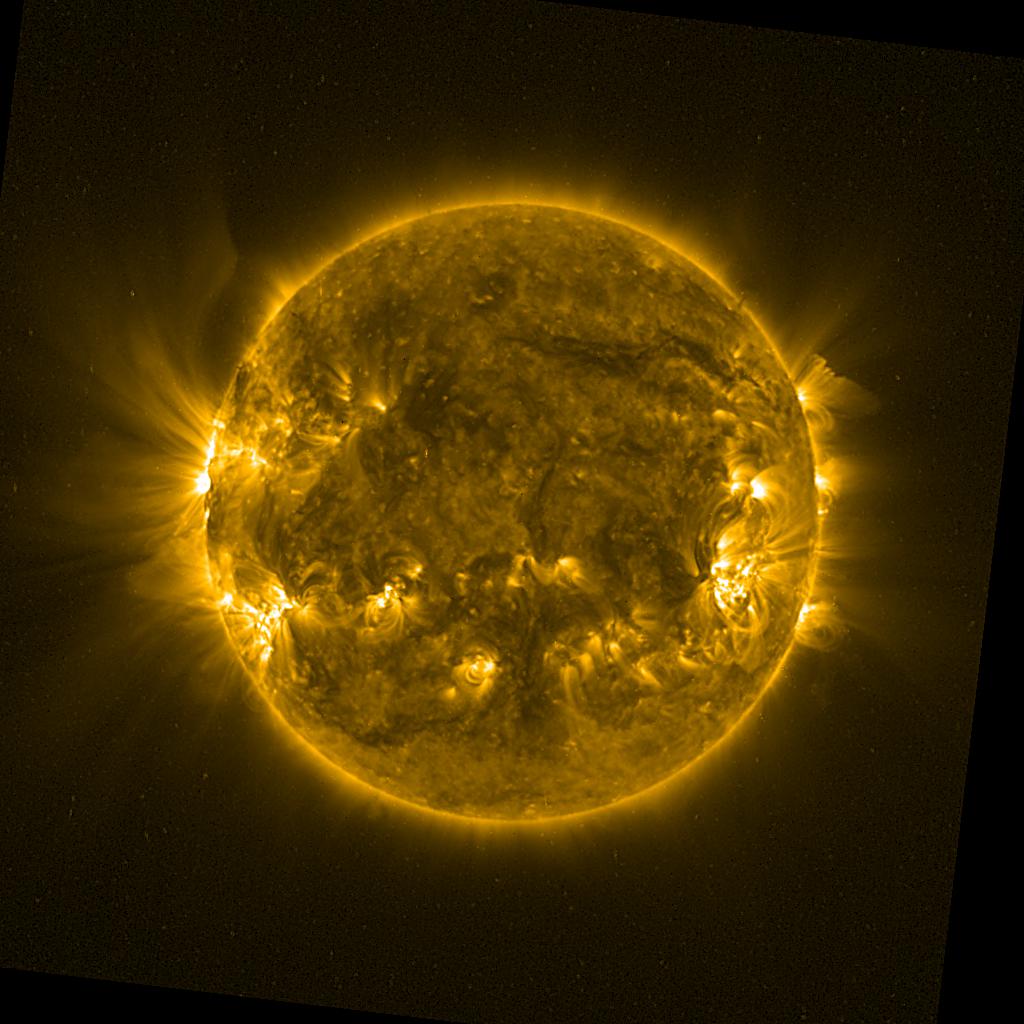 Lines indicated in yellow correspond to events on the (non-visible) backside of the sun.