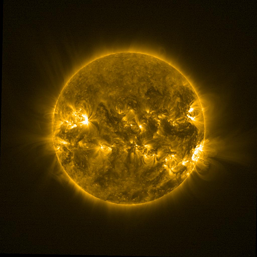 Lines indicated in yellow correspond to events on the (non-visible) backside of the sun.