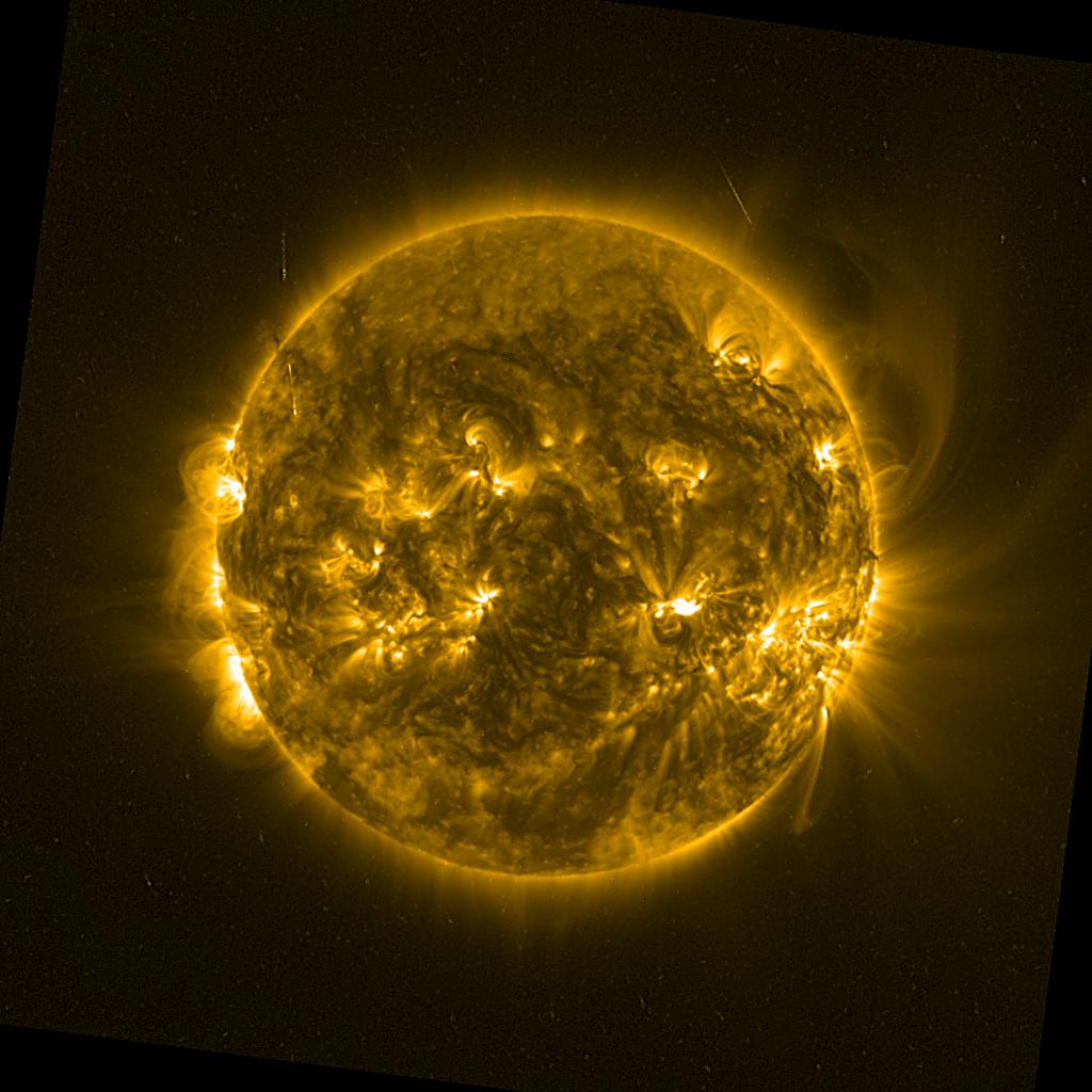 Lines indicated in yellow correspond to events on the (non-visible) backside of the sun.