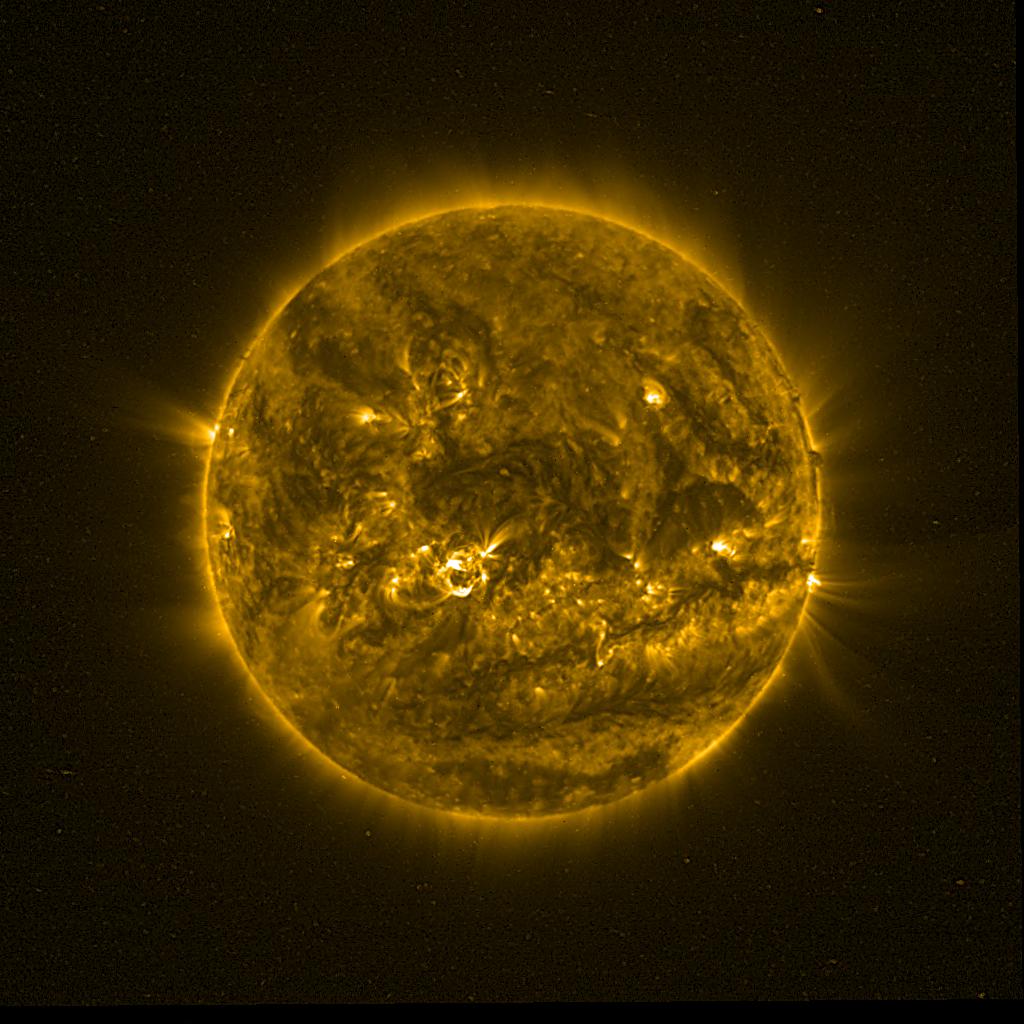Lines indicated in yellow correspond to events on the (non-visible) backside of the sun.