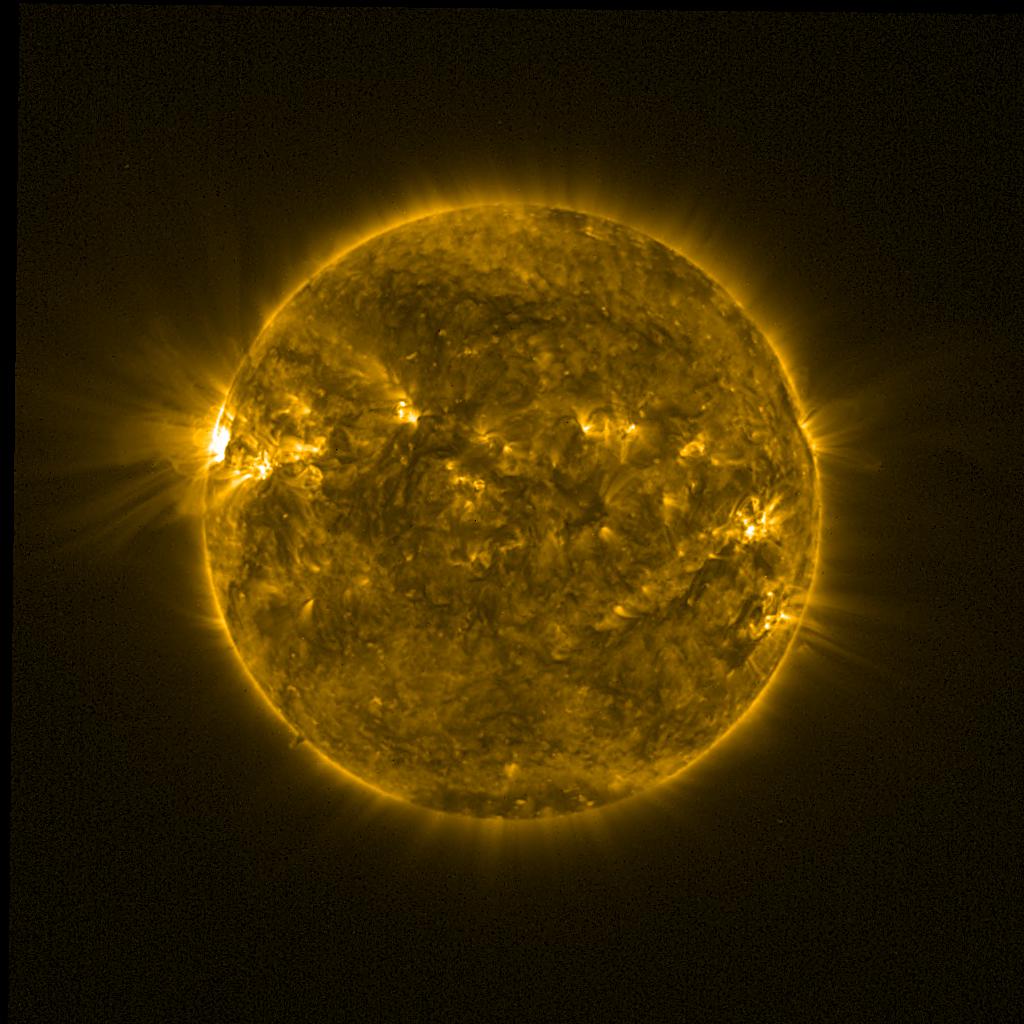 Lines indicated in yellow correspond to events on the (non-visible) backside of the sun.