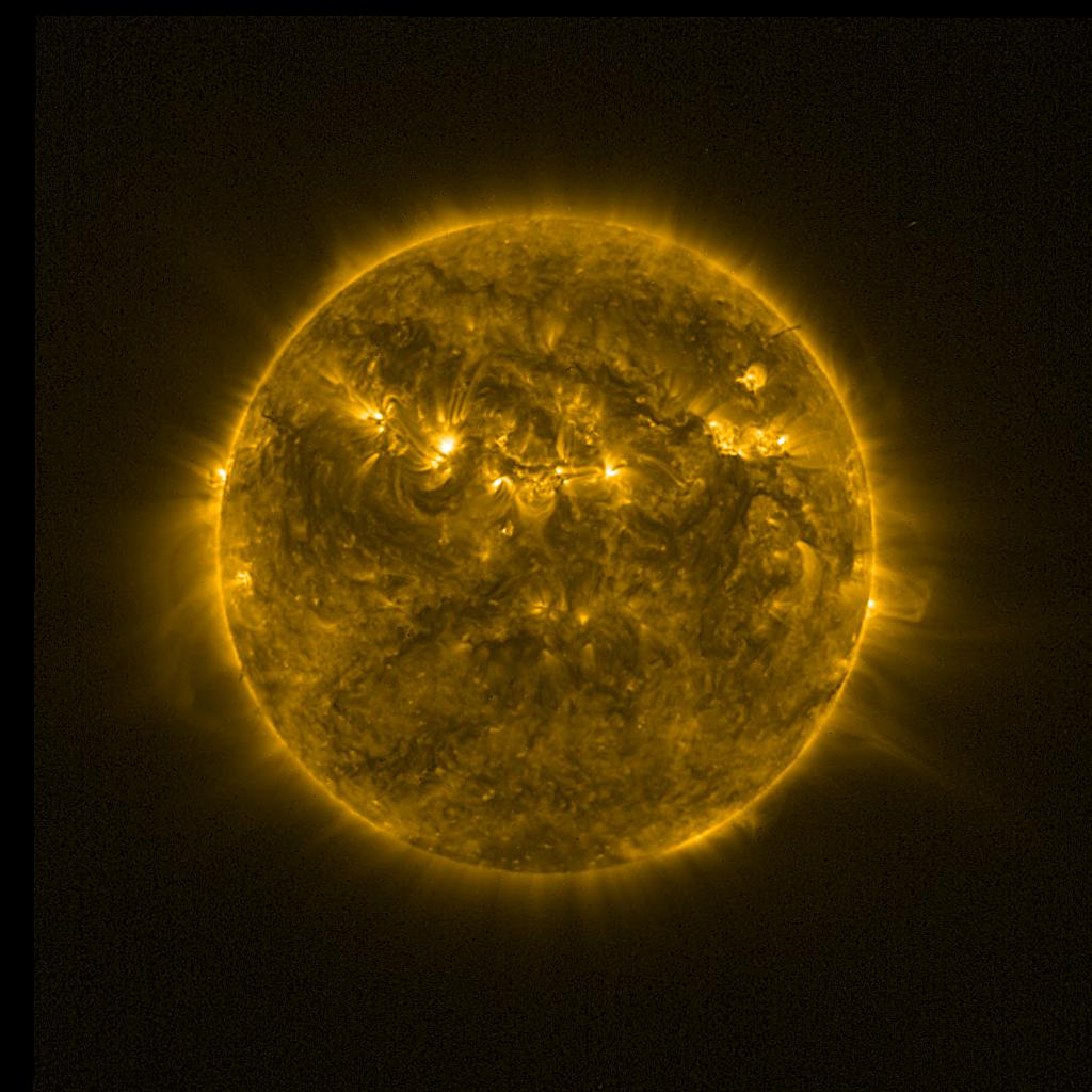 Lines indicated in yellow correspond to events on the (non-visible) backside of the sun.