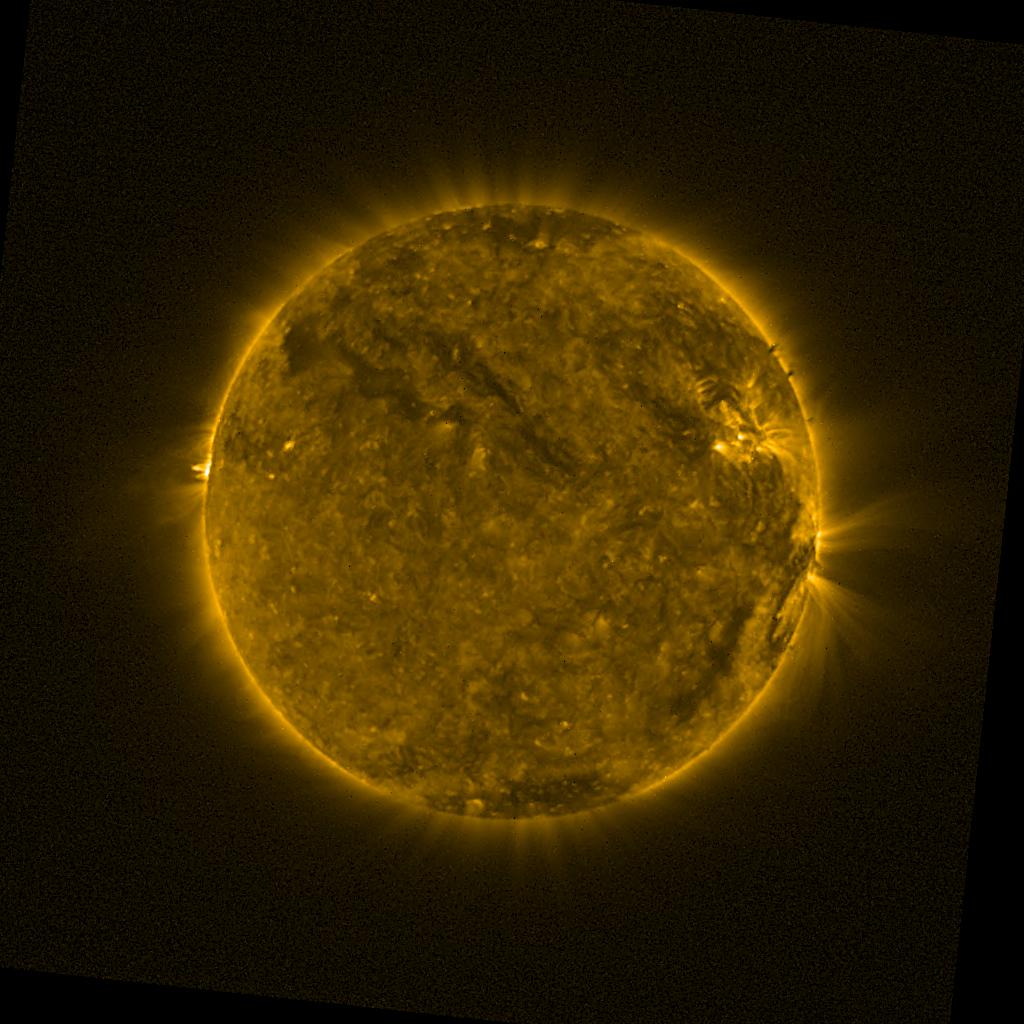 Lines indicated in yellow correspond to events on the (non-visible) backside of the sun.