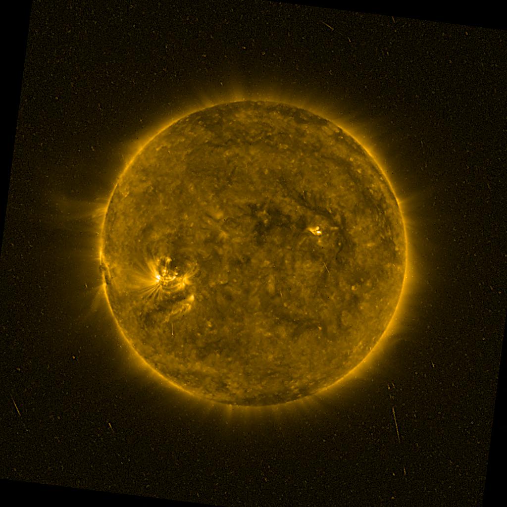 Lines indicated in yellow correspond to events on the (non-visible) backside of the sun.