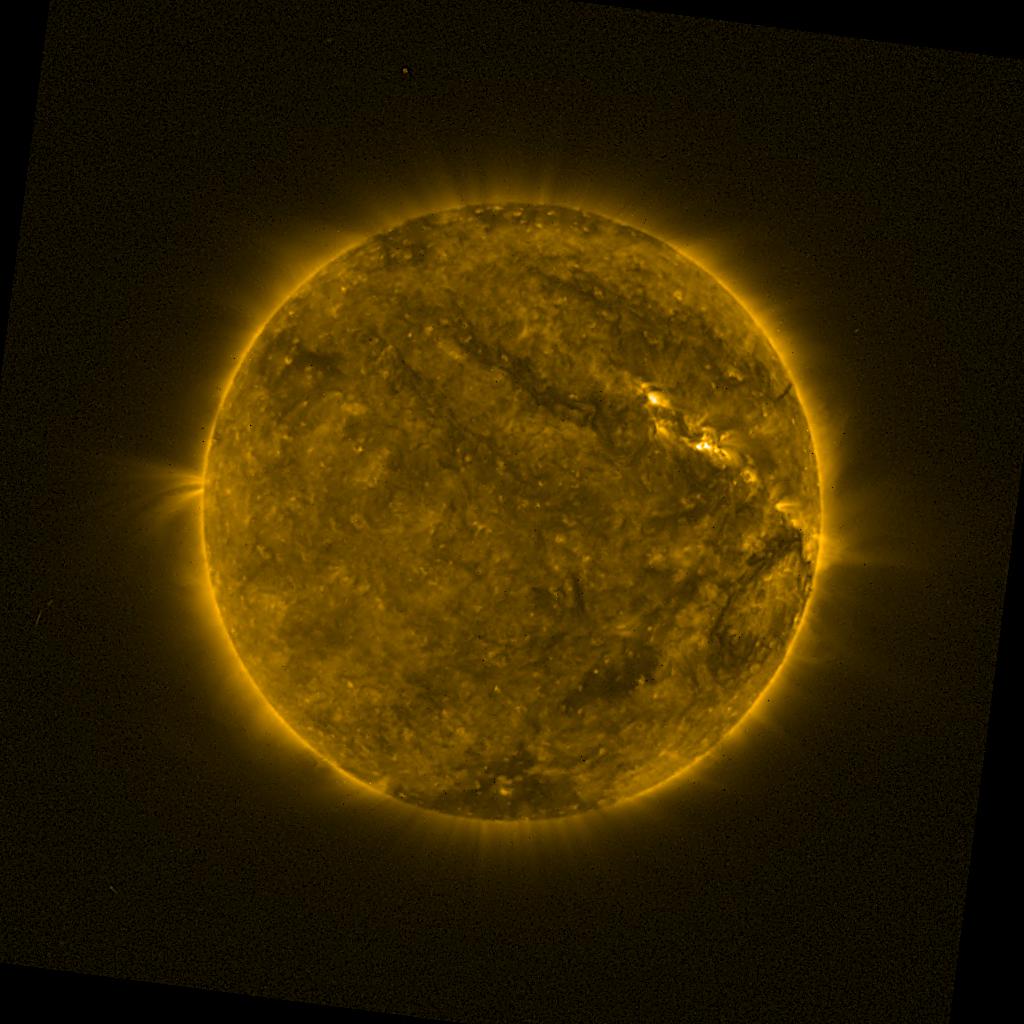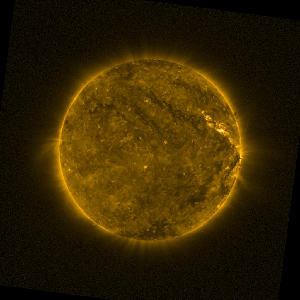 Lines indicated in yellow correspond to events on the (non-visible) backside of the sun.