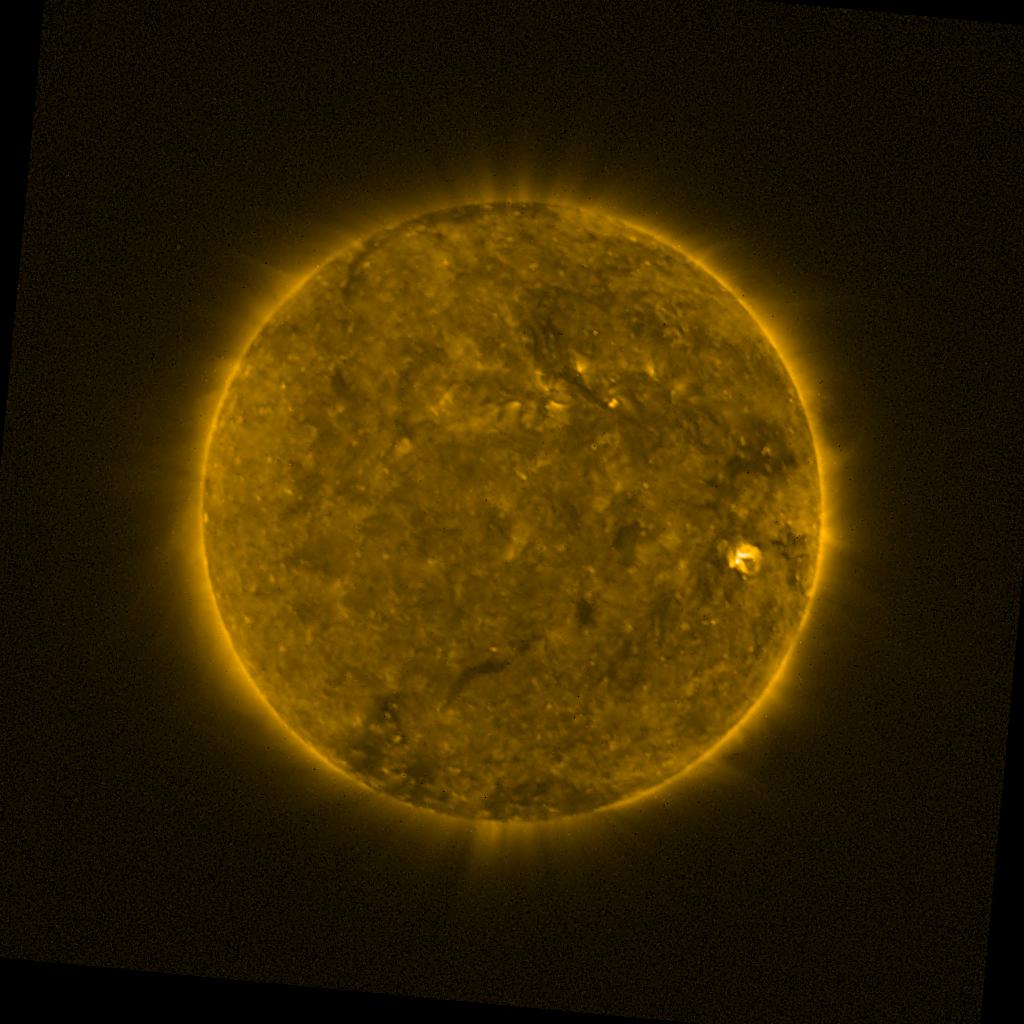 Lines indicated in yellow correspond to events on the (non-visible) backside of the sun.