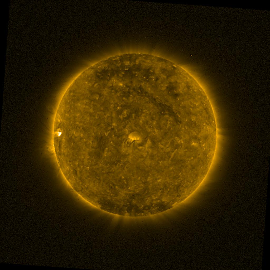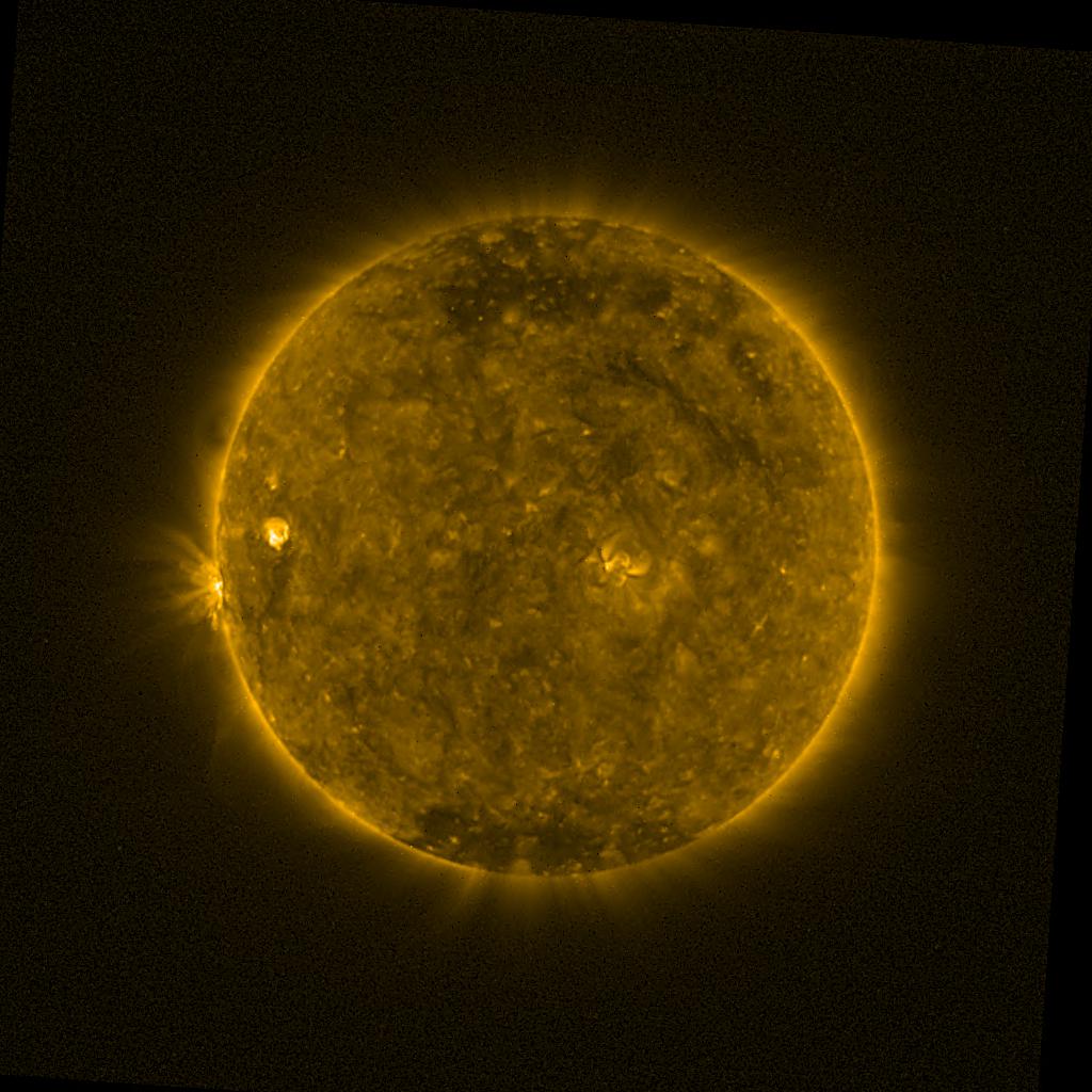 Lines indicated in yellow correspond to events on the (non-visible) backside of the sun.
