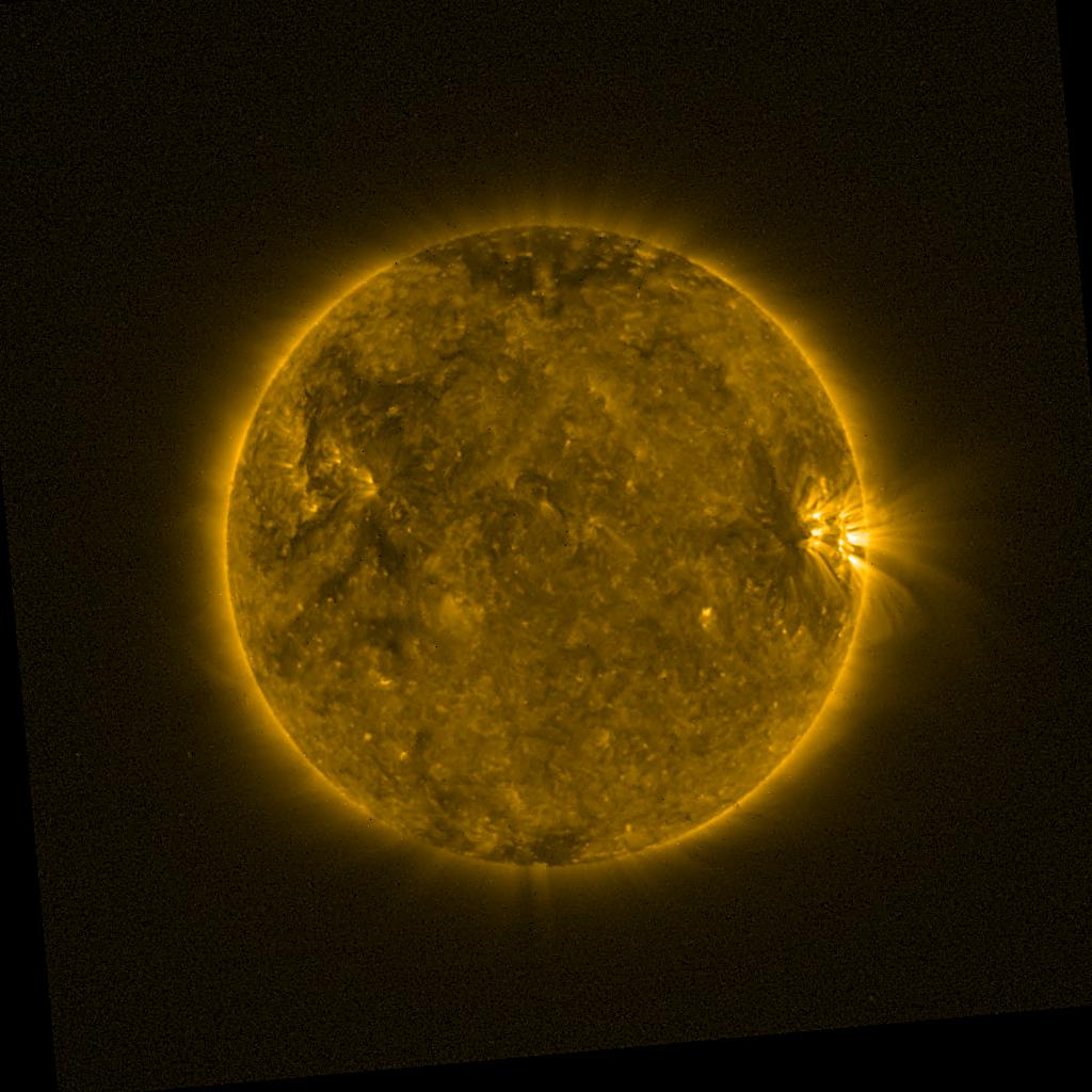 Lines indicated in yellow correspond to events on the (non-visible) backside of the sun.