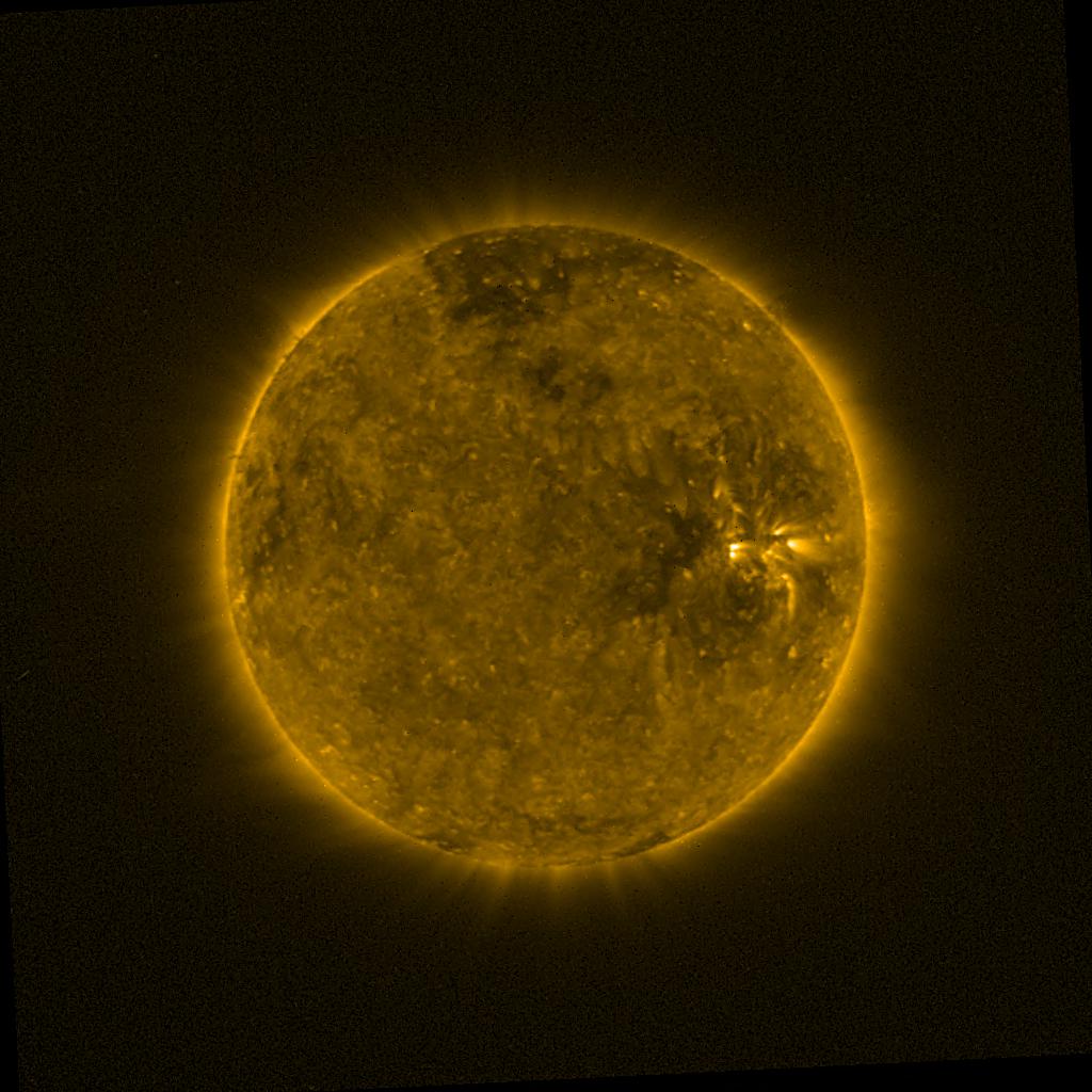 Lines indicated in yellow correspond to events on the (non-visible) backside of the sun.
