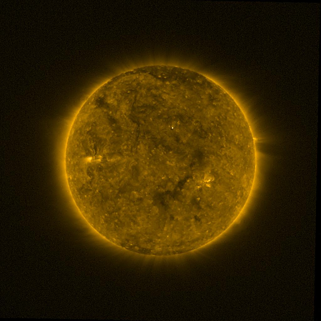 Lines indicated in yellow correspond to events on the (non-visible) backside of the sun.