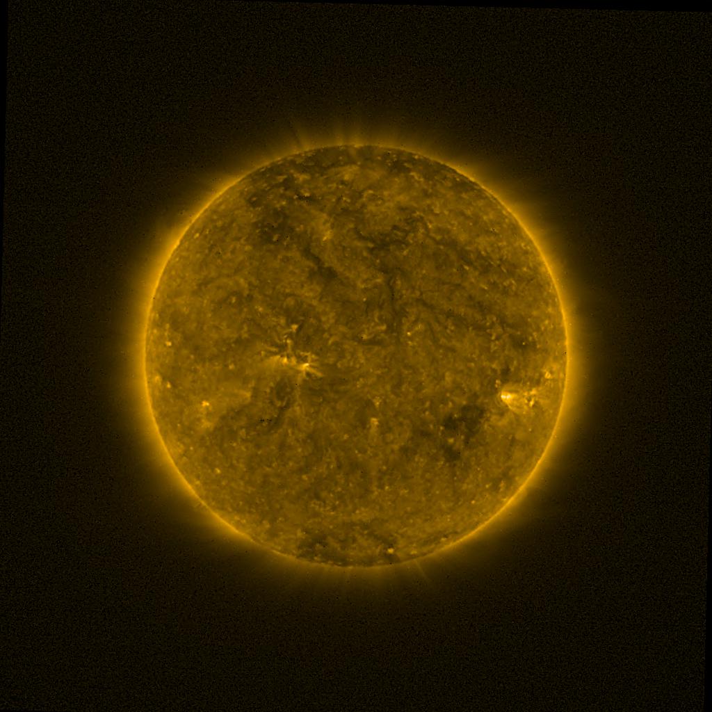 Lines indicated in yellow correspond to events on the (non-visible) backside of the sun.