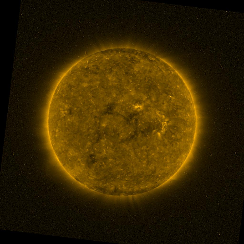 Lines indicated in yellow correspond to events on the (non-visible) backside of the sun.