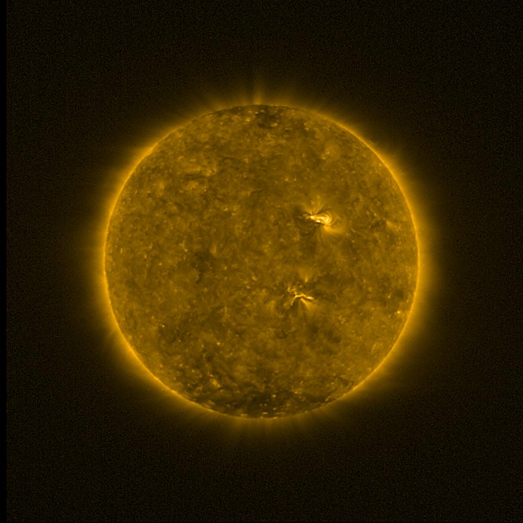 Lines indicated in yellow correspond to events on the (non-visible) backside of the sun.