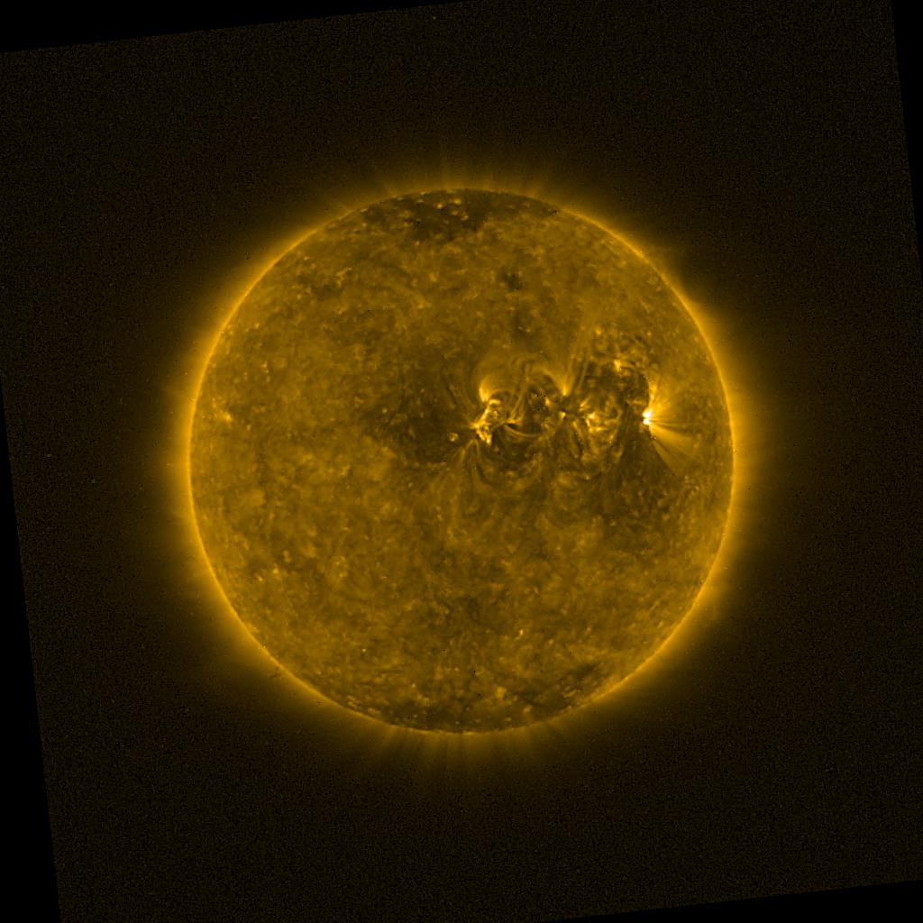 Lines indicated in yellow correspond to events on the (non-visible) backside of the sun.