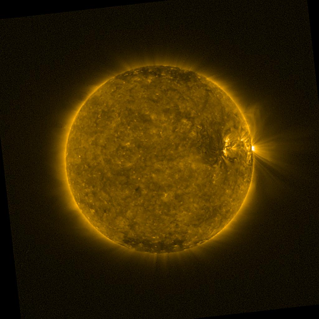 Lines indicated in yellow correspond to events on the (non-visible) backside of the sun.