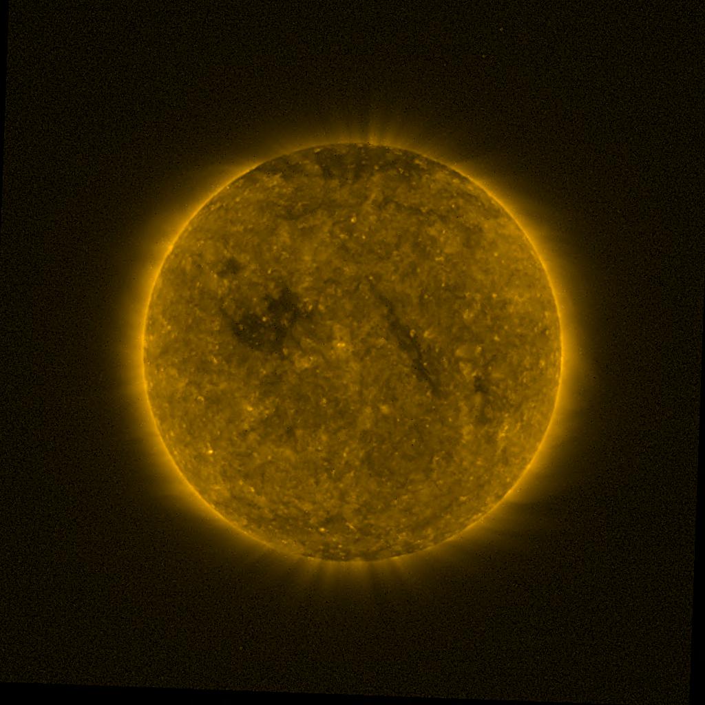 Lines indicated in yellow correspond to events on the (non-visible) backside of the sun.