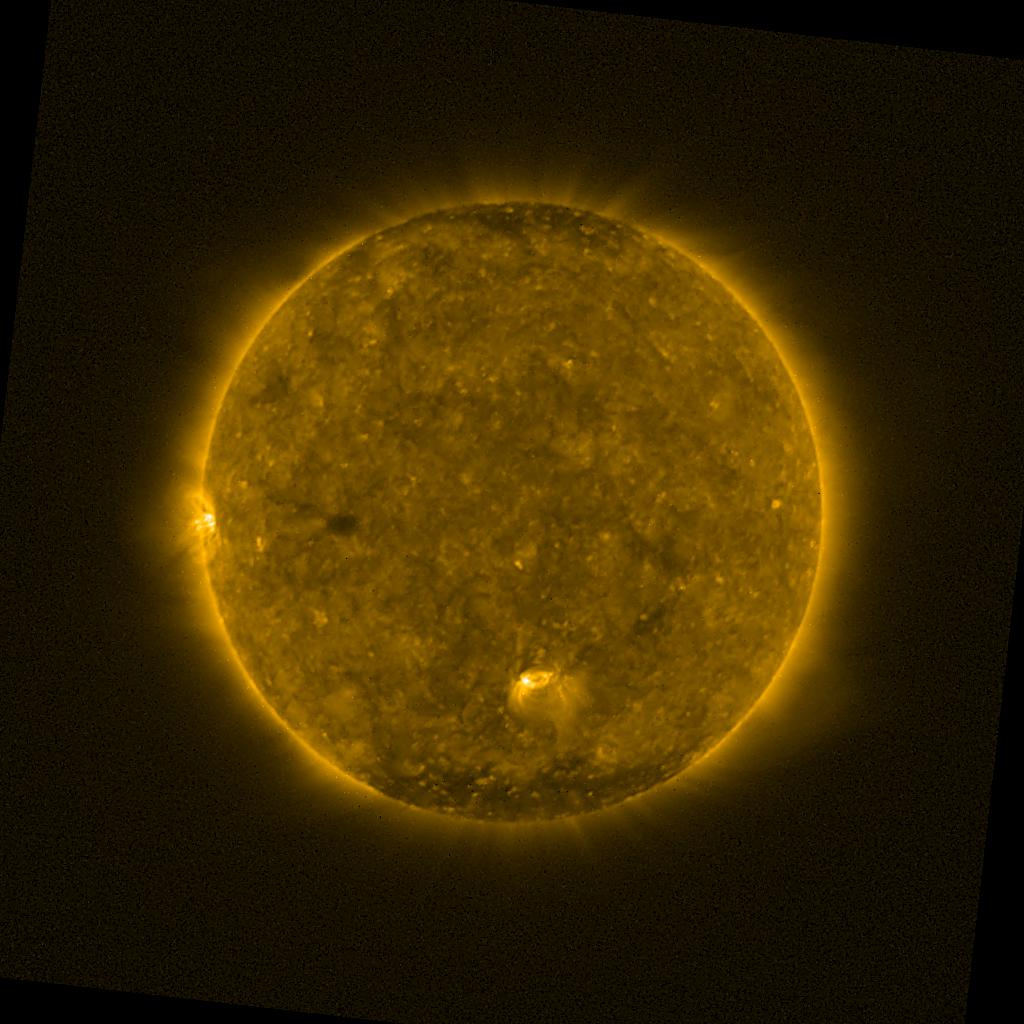 Lines indicated in yellow correspond to events on the (non-visible) backside of the sun.