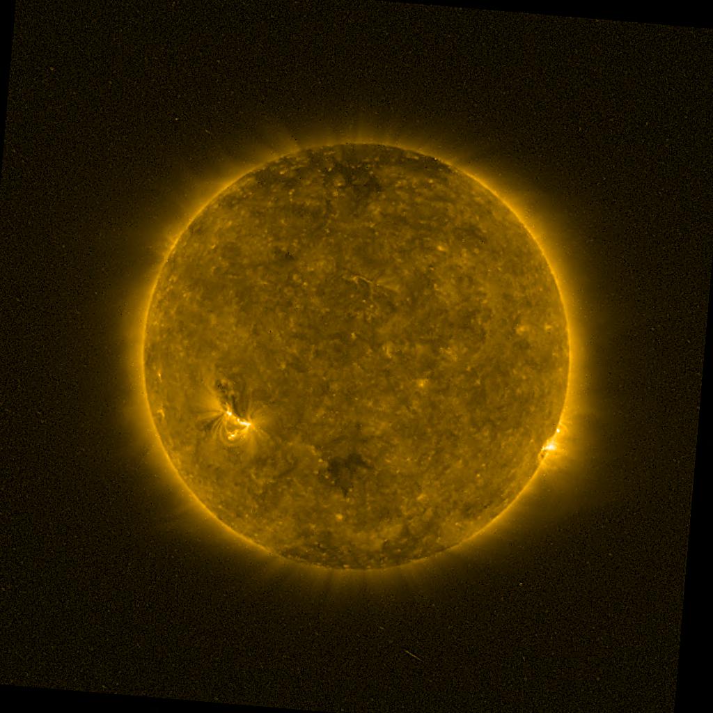 Lines indicated in yellow correspond to events on the (non-visible) backside of the sun.