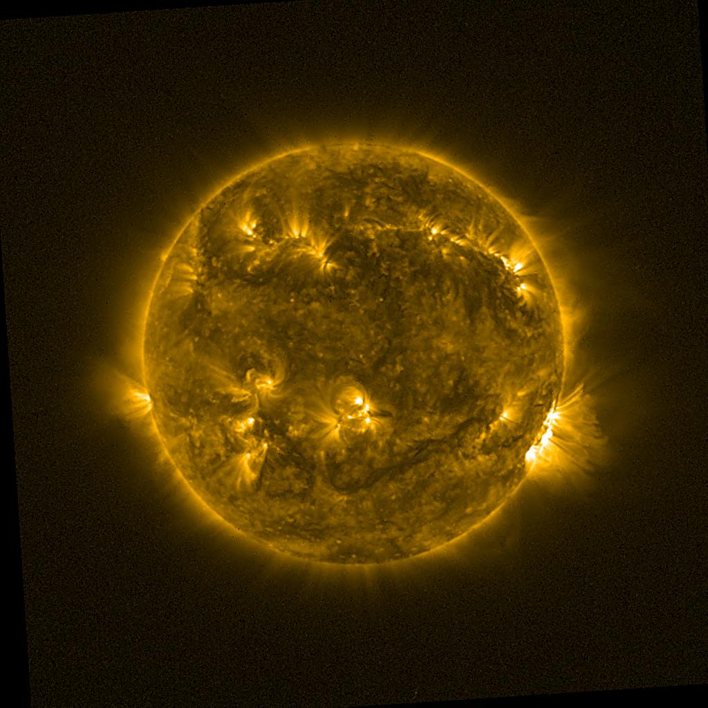 Lines indicated in yellow correspond to events on the (non-visible) backside of the sun.
