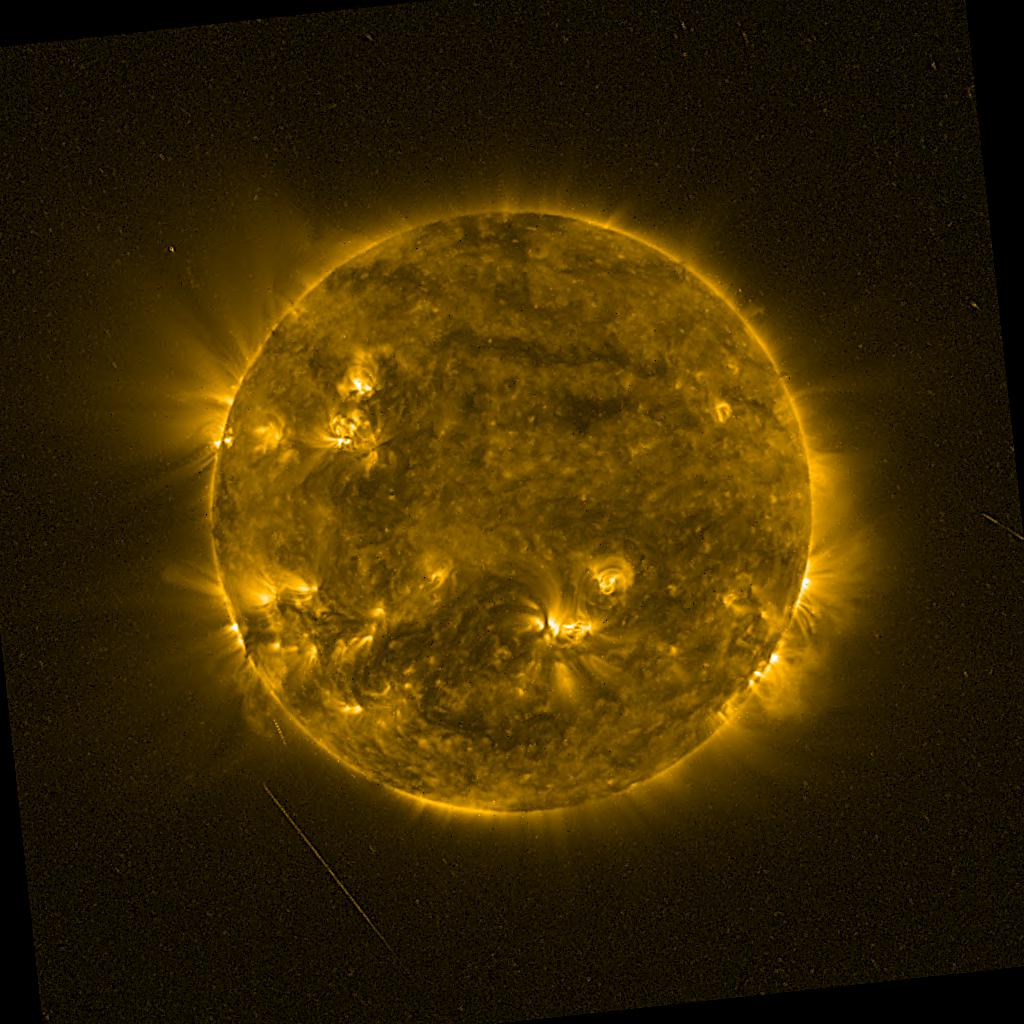 Lines indicated in yellow correspond to events on the (non-visible) backside of the sun.