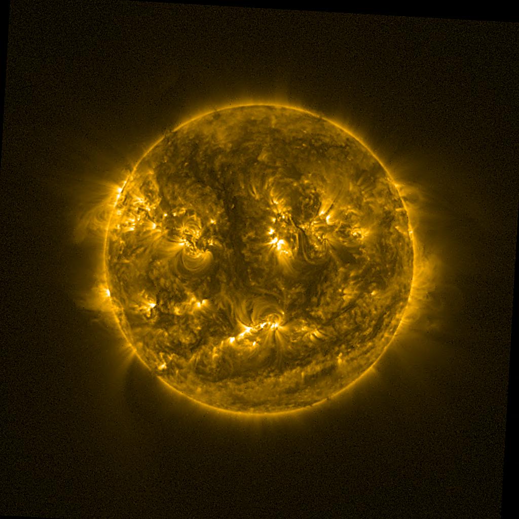 Lines indicated in yellow correspond to events on the (non-visible) backside of the sun.