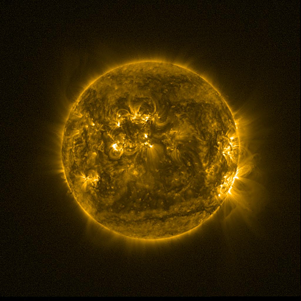 Lines indicated in yellow correspond to events on the (non-visible) backside of the sun.