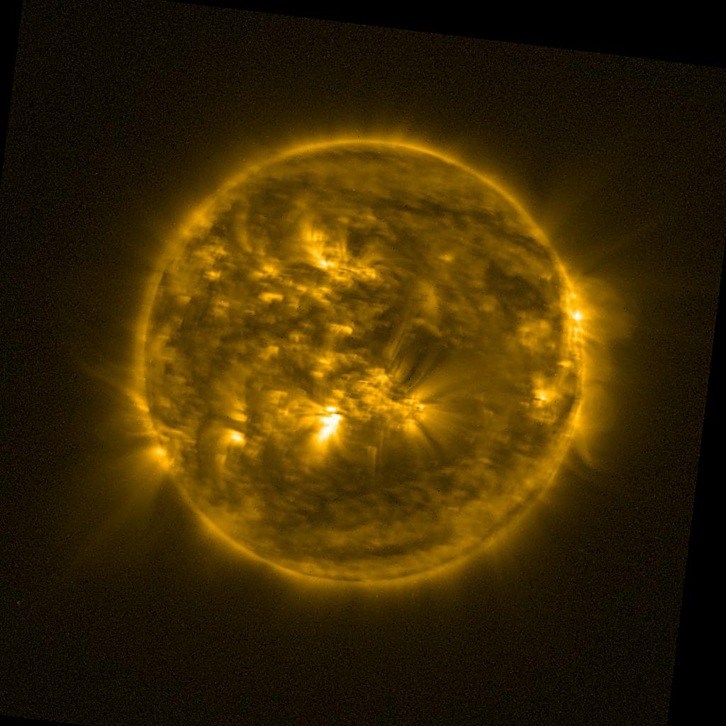 Lines indicated in yellow correspond to events on the (non-visible) backside of the sun.