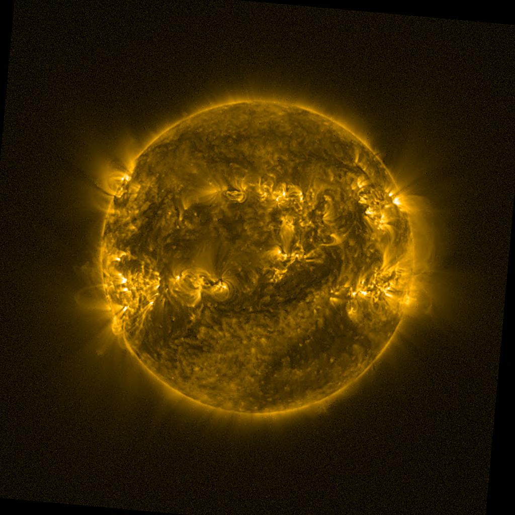 Lines indicated in yellow correspond to events on the (non-visible) backside of the sun.