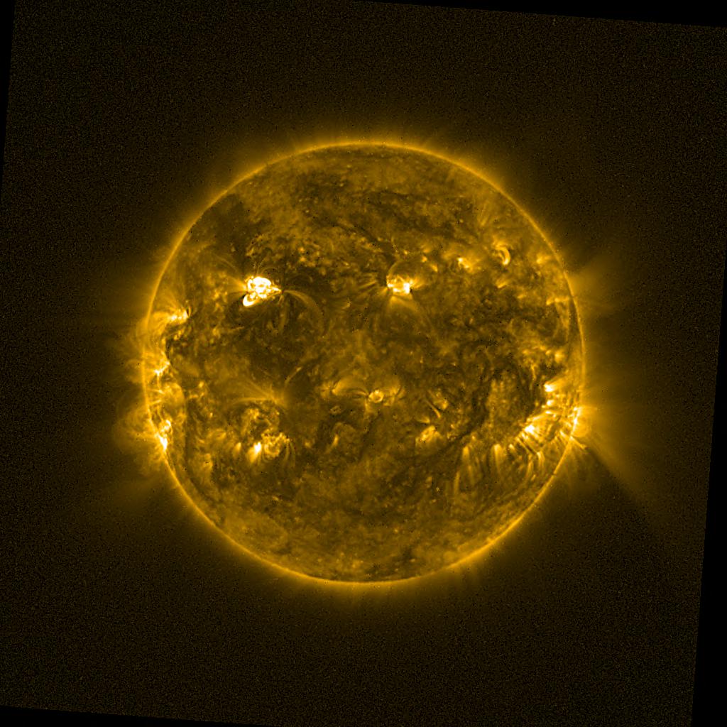 Lines indicated in yellow correspond to events on the (non-visible) backside of the sun.