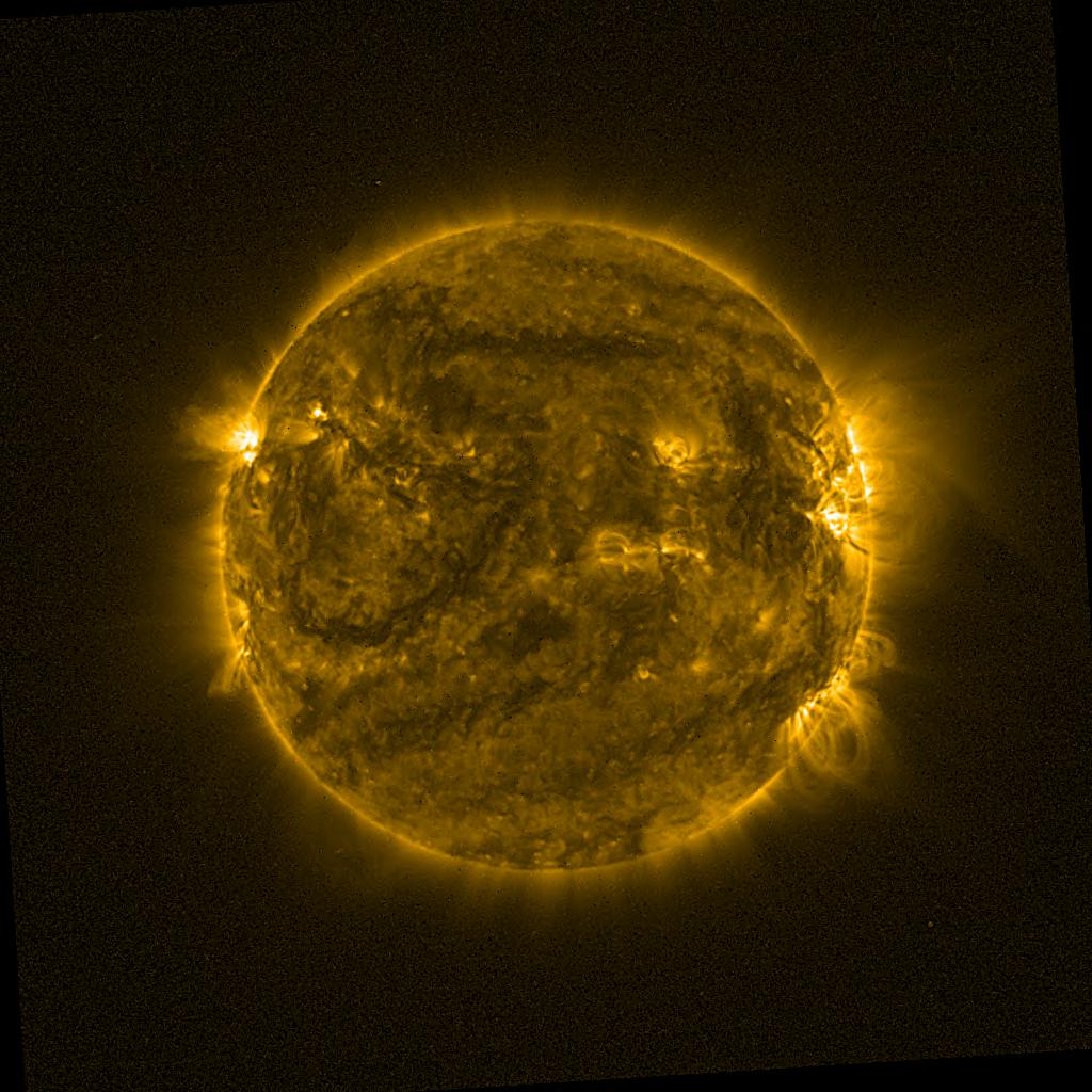 Lines indicated in yellow correspond to events on the (non-visible) backside of the sun.